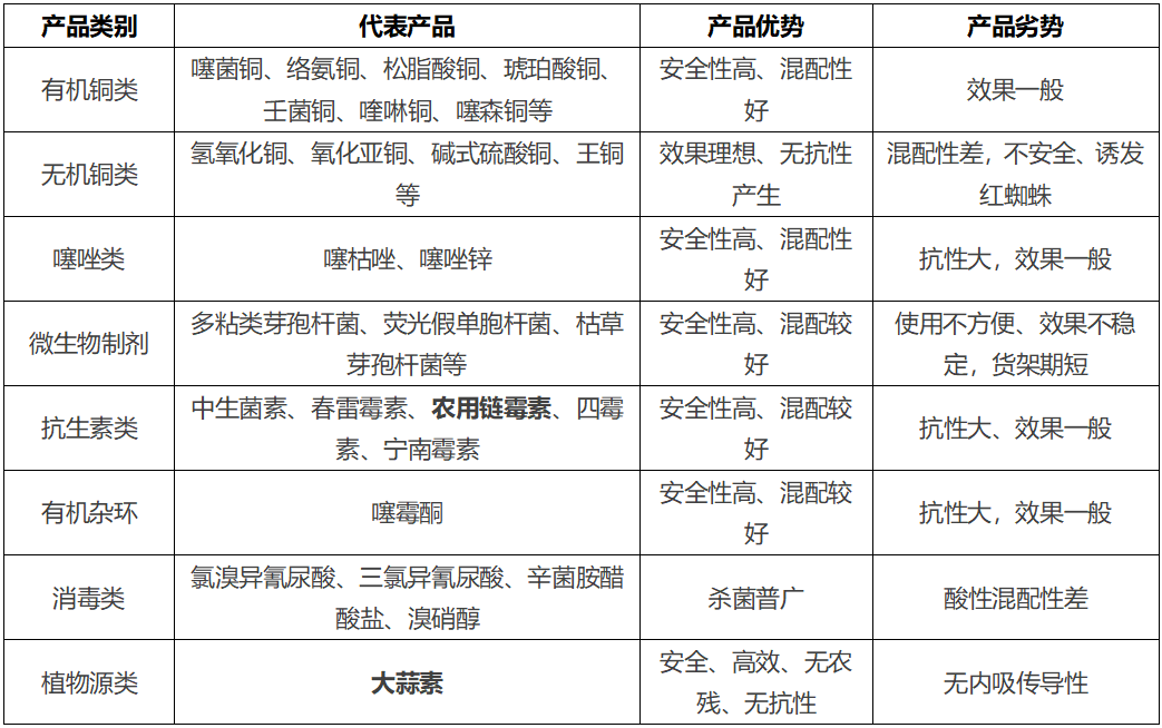 目前市面防治細(xì)菌性病害的藥主要有無機(jī)銅、有機(jī)銅、消毒類、抗生素類、微生物制劑、有機(jī)雜環(huán)類等殺菌劑。但在使用過程中總面臨抗性升高、防效不理想、安全性差、混配性差、農(nóng)殘超標(biāo)等系列問題。那農(nóng)戶究竟該如何選擇或靈活使用這些殺菌劑,更好的保護(hù)蔬菜,并規(guī)避安全隱患呢?