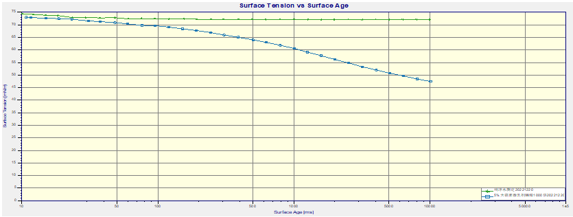 圖 5%大蒜素微乳劑動態表面張力測試(1000倍稀釋)