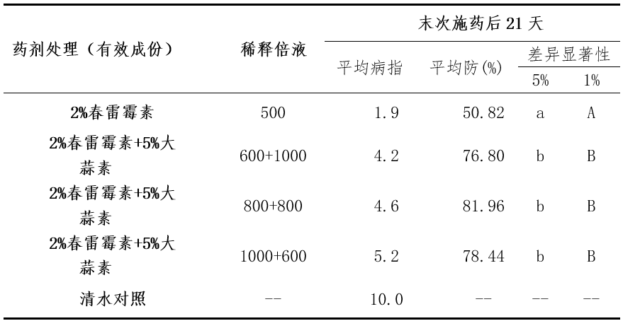 ″大蒜素+春雷霉素″ 應用技術研究