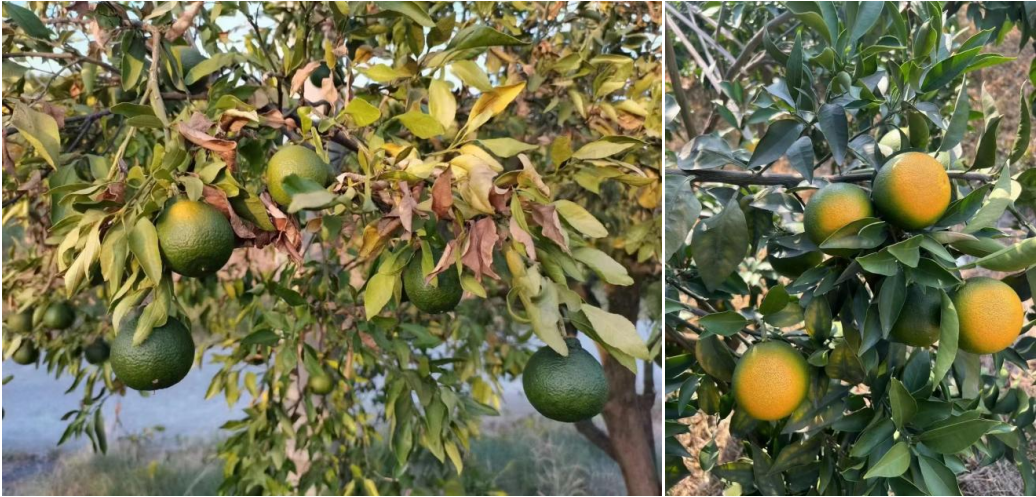 由于高溫干旱,日灼果、裂果等現(xiàn)象會(huì)嚴(yán)重影響柑橘產(chǎn)量和品質(zhì),加重果農(nóng)的負(fù)擔(dān)。天然蕓苔素在柑橘果實(shí)膨大、高溫防日灼、預(yù)防裂果中扮演著重要角色。